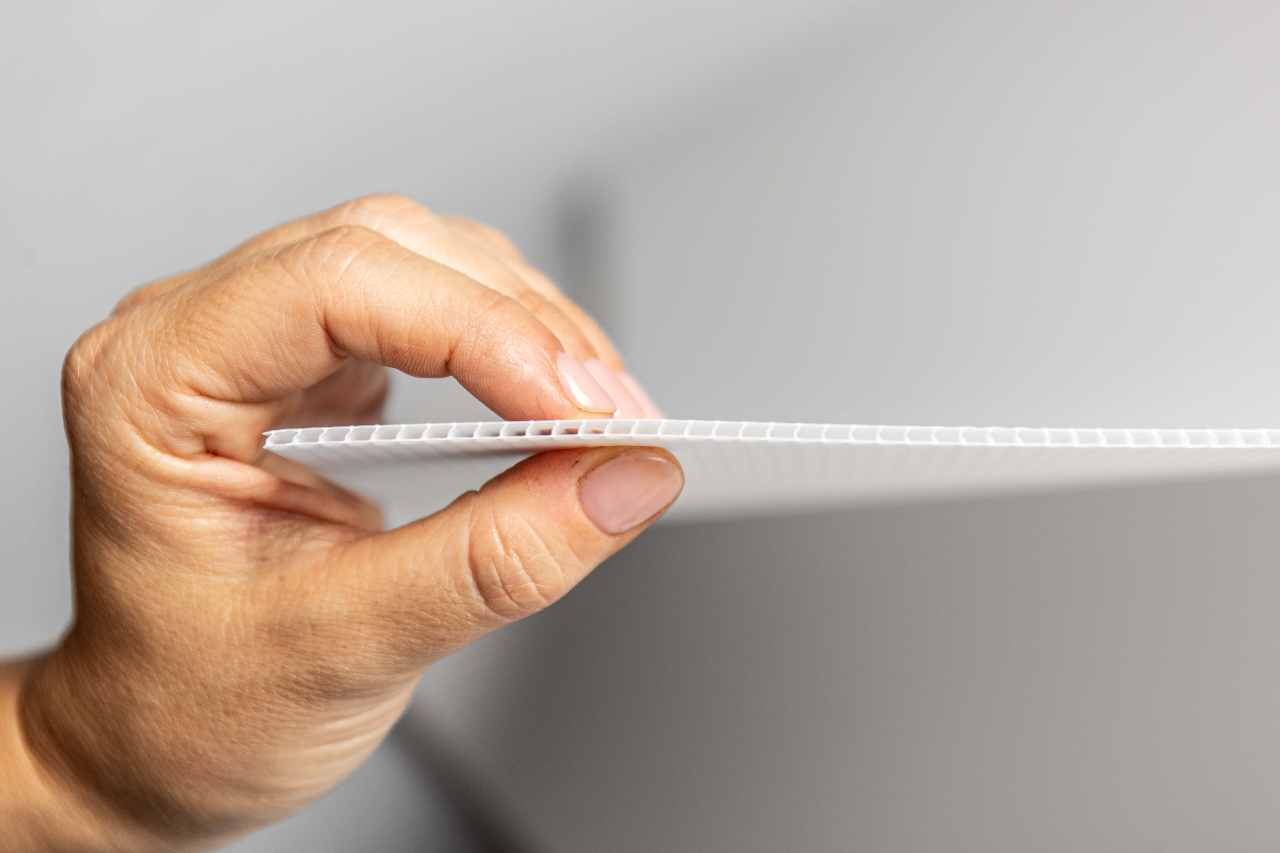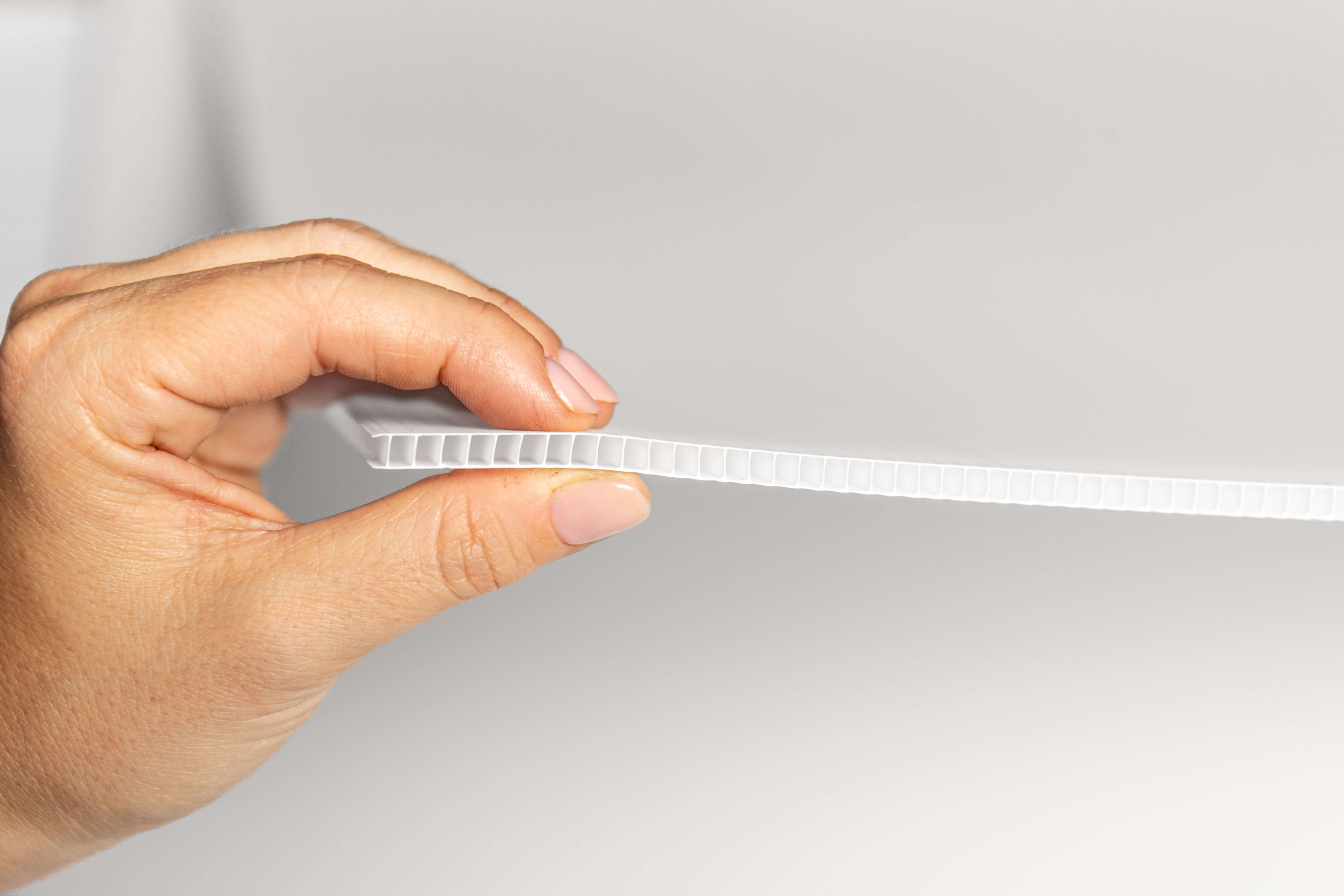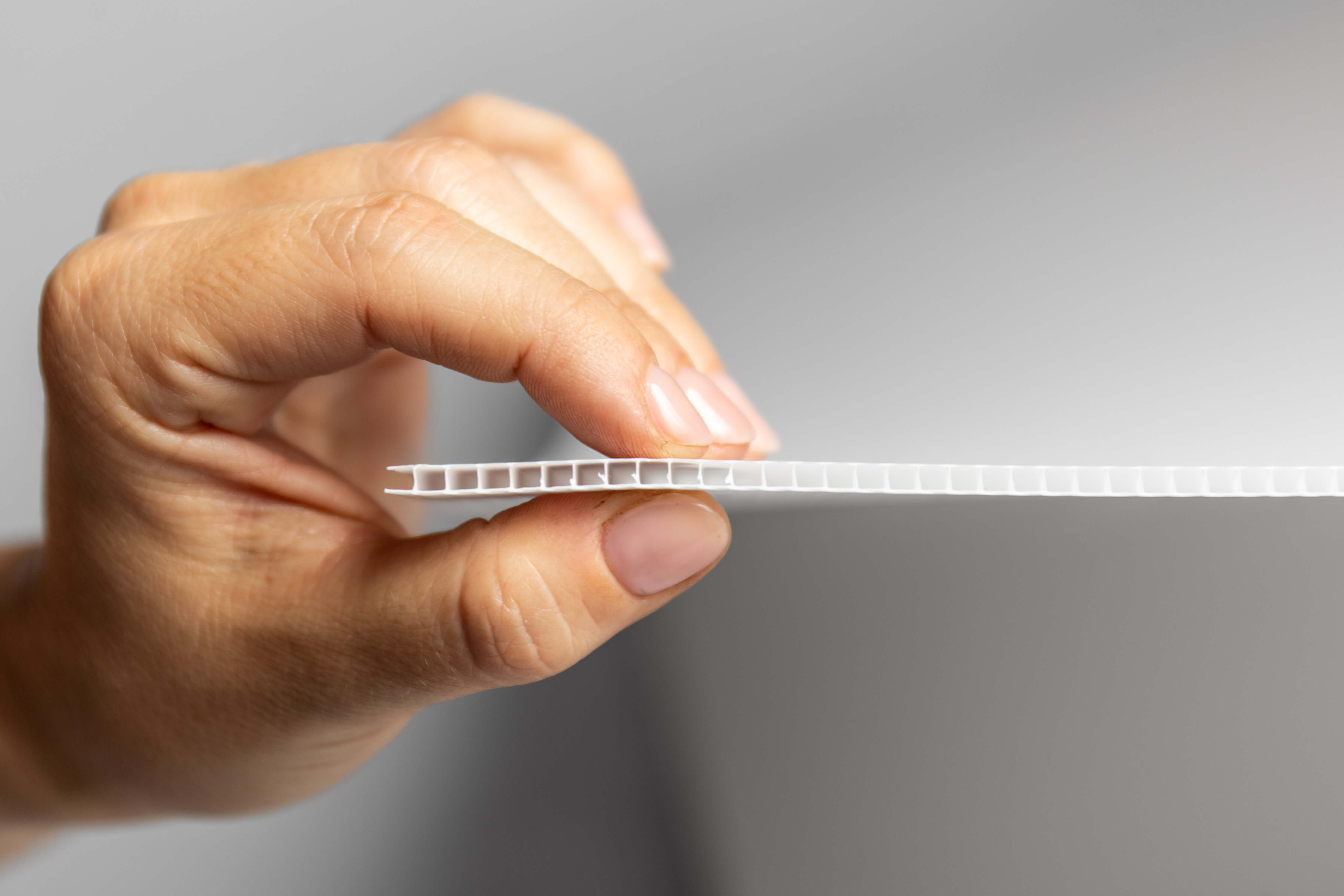 El corrugado plástico es un termoplástico de estructura cristalina que se obtiene por polimerización del Propileno. Sus cualidades permiten imprimirlo, troquelarlo, cortarlo y ensamblarlo en las más diversas maneras. Debido a su resistencia, durabilidad y bajo peso, esta lámina constituye una alternativa superior a otros materiales tales como el cartón, el hardboard, metal, maderas y plásticos inyectados.